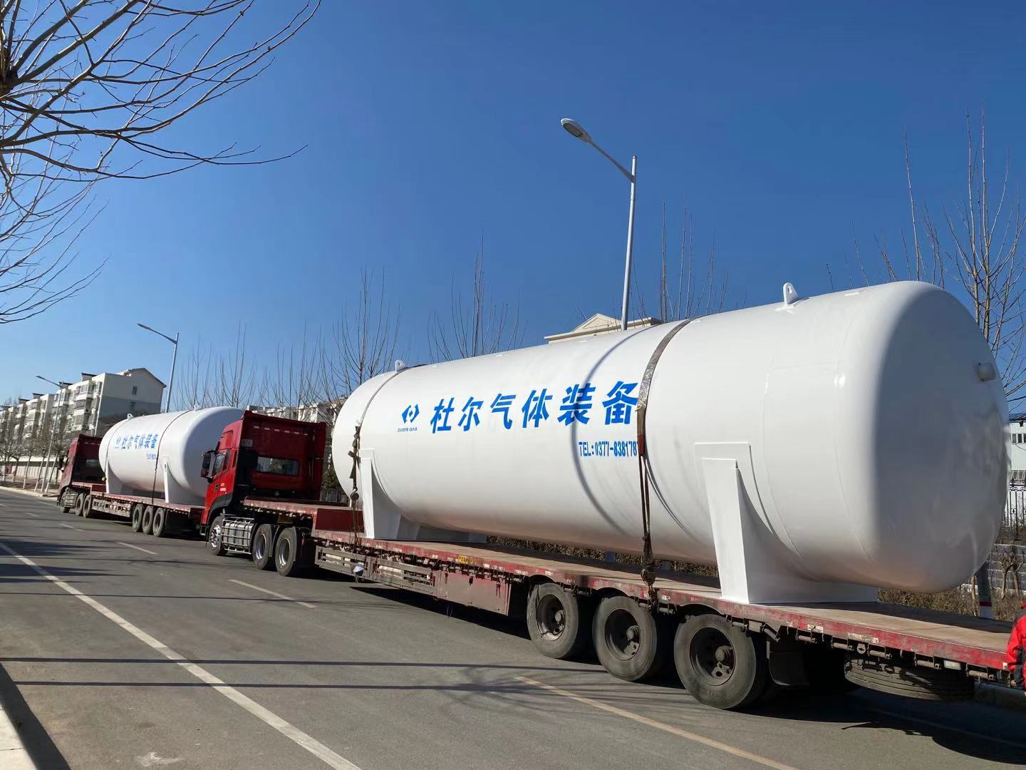 一般儲存大量的笑氣會以液體的方式的儲存,會采用低溫液體真空儲罐盡量存放。低溫液體真空儲罐保證了笑氣的低溫狀態下的長時間存放,杜爾公司設計生產的低溫液體真空儲罐有20m3,30m3,50m360m3等幾種常用規格,也可以根據客戶實際需求量身訂做。