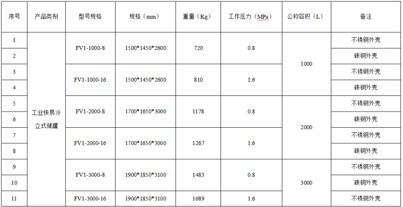 3、 Product specification, model and parameters of fast and easy cooling storage tank